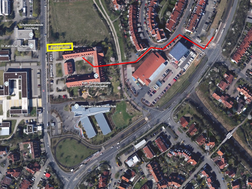 Zu unseren Parkplätzen geht es über die 2. Zufahrt am linken Flügel.