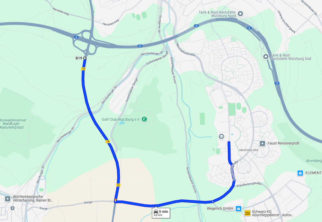 A3 Abfahrt Würzburg Heidingsfeld Richtung Giebelstadt